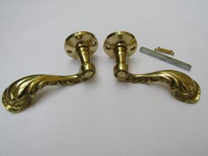 Pair Of Fancy Ornate Lever On Rose Door Handles Polished Brass